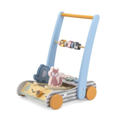 Attīstošie staigulīši palīdz bērnam apgūt līdzsvaru un kustību koordināciju, vienlaikus piedāvājot rotaļas ar koka klucīšiem un aktivitātēm.