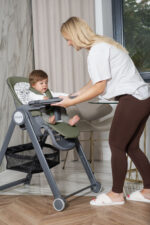 1. Barošanas krēsls pārvietojams un kompakti salokāms.