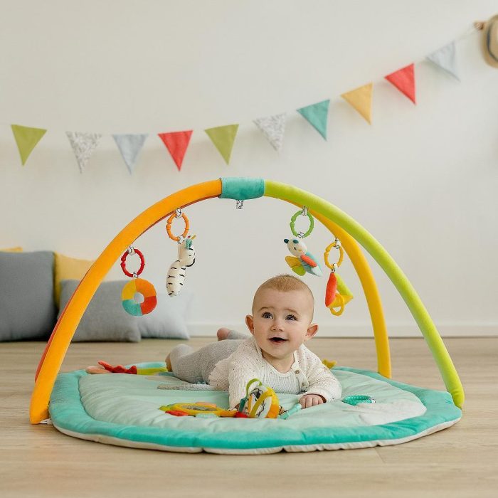 - ✔ 5 noņemamas rotaļlietas uz rotaļu loka