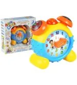 Starp pogām ir arī viena muzikālā poga ar 8 dažādiem režīmiem. Šī funkcija stimulē bērna dzirdi, mācot viņam atšķirt skaņas un iesaistīt loģisko domāšanu. Un tas vēl nav viss! Pulksteņa rādītāja pārvietošana uz norādīto numuru aktivizē skaņas signālu, kas nosauc skaitli un laiku, piemēram, “tas ir seši un laiks ir seši”. Visas skaņas papildina interesanti gaismas efekti.