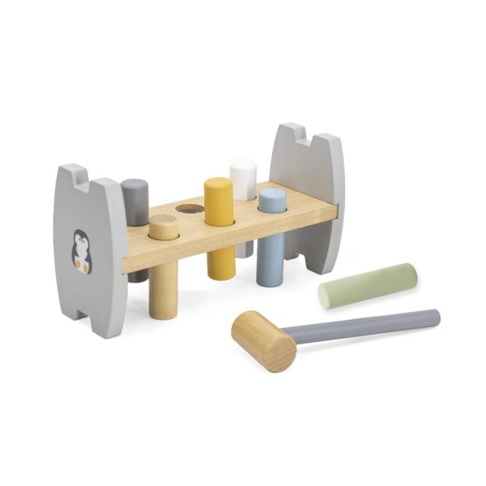 Attīstošā koka rotaļlieta ar āmuru Penguin.