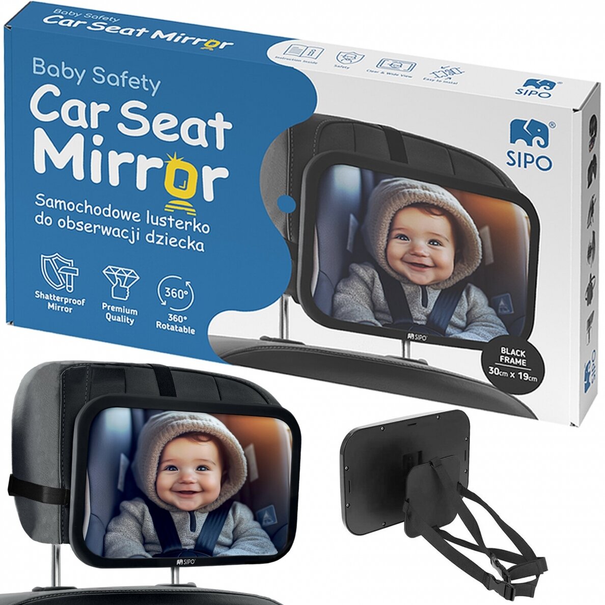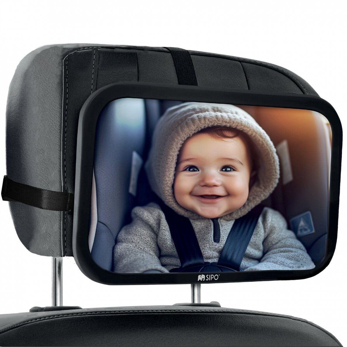 SIPO auto drošības spogulis ir neaizvietojams palīgs vecākiem, kas ceļo kopā ar mazu bērnu. Tas ļauj vienmēr redzēt mazuli aizmugurējā sēdeklī, neapdraudot braukšanas drošību un uzmanību uz ceļa.