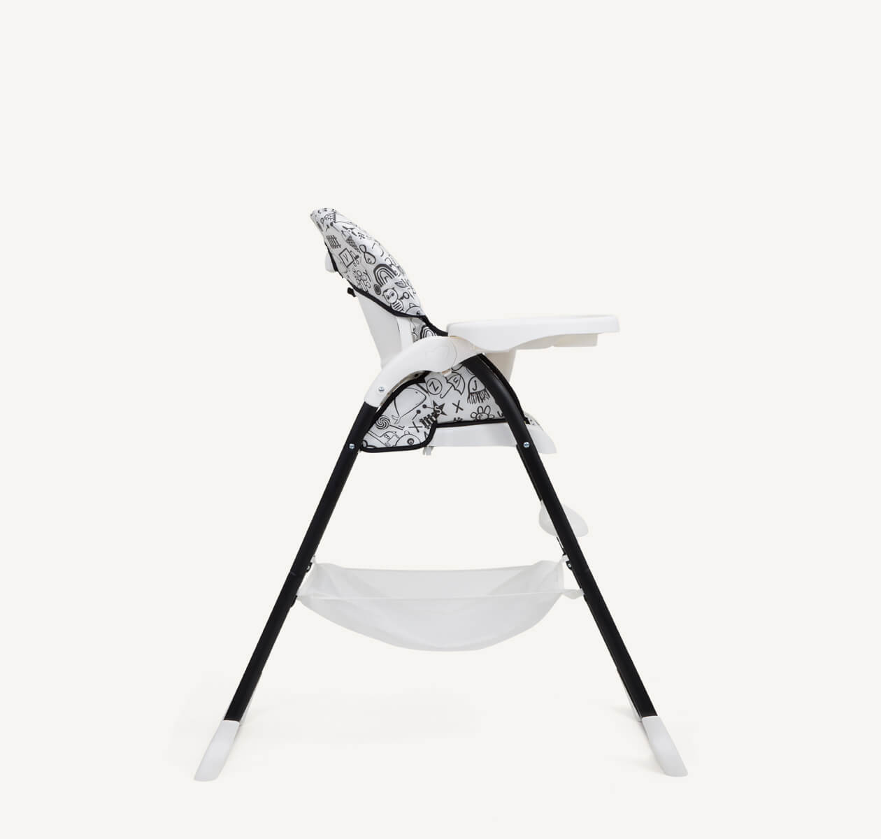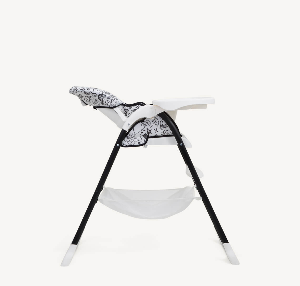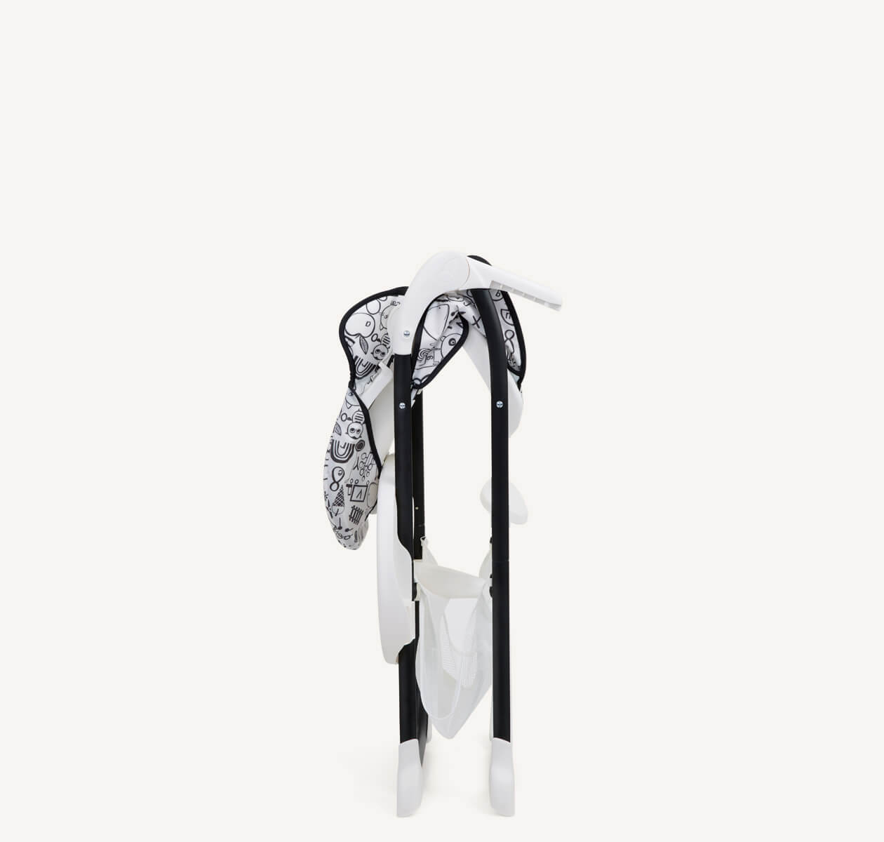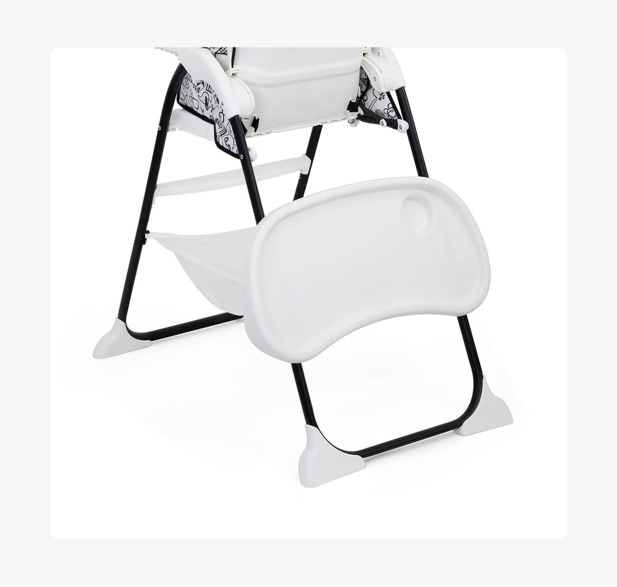 Plašs mantu grozs zem sēdekļa ir piemērots bērnu piederumu, salvetīšu vai rotaļlietu uzglabāšanai, tādējādi viss nepieciešamais vienmēr būs pa rokai. Noņemams un viegli tīrāms pārvalks padara ikdienas lietošanu īpaši vienkāršu, un krēsls pēc lietošanas kompakti salokās un stāv stabili vertikāli, neaizņemot lieku vietu.