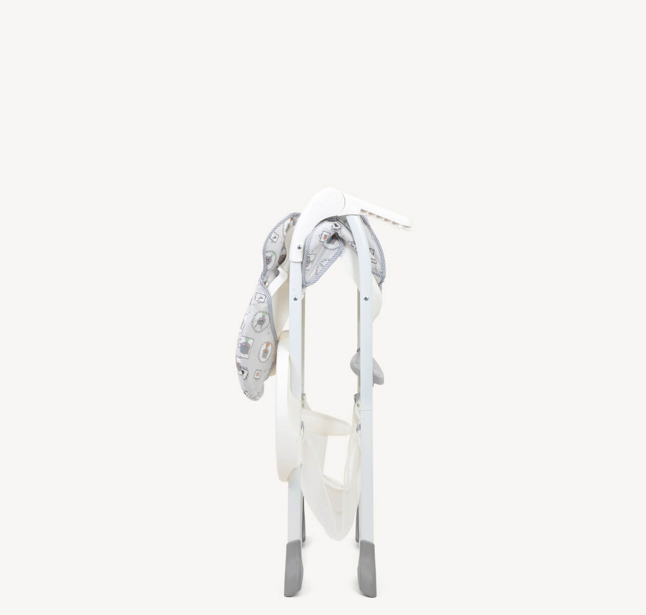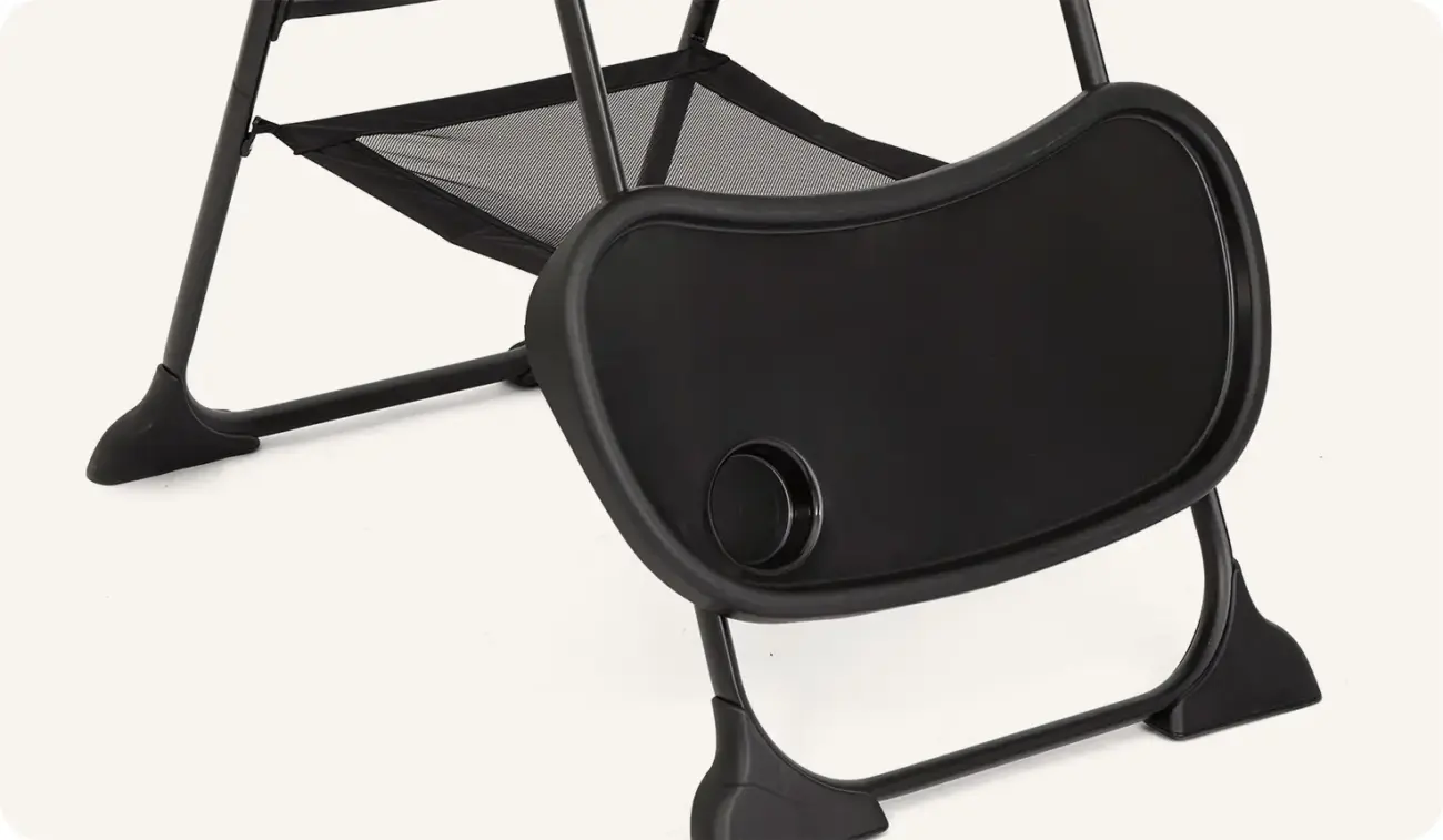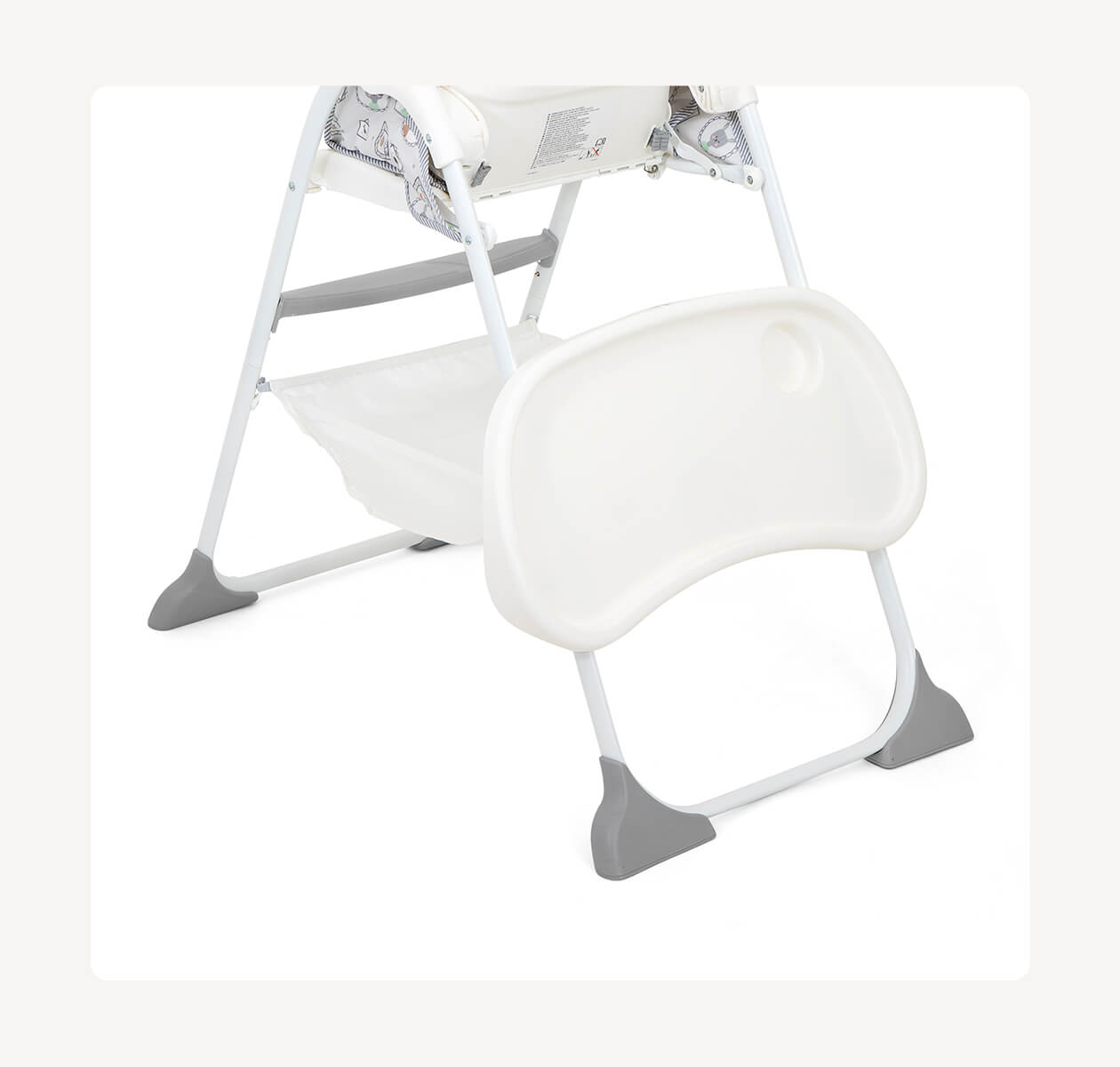 Plašs mantu grozs zem sēdekļa ir piemērots bērnu piederumu, salvetīšu vai rotaļlietu uzglabāšanai, tādējādi viss nepieciešamais vienmēr būs pa rokai. Noņemams un viegli tīrāms pārvalks padara ikdienas lietošanu īpaši vienkāršu, un krēsls pēc lietošanas kompakti salokās un stāv stabili vertikāli, neaizņemot lieku vietu.