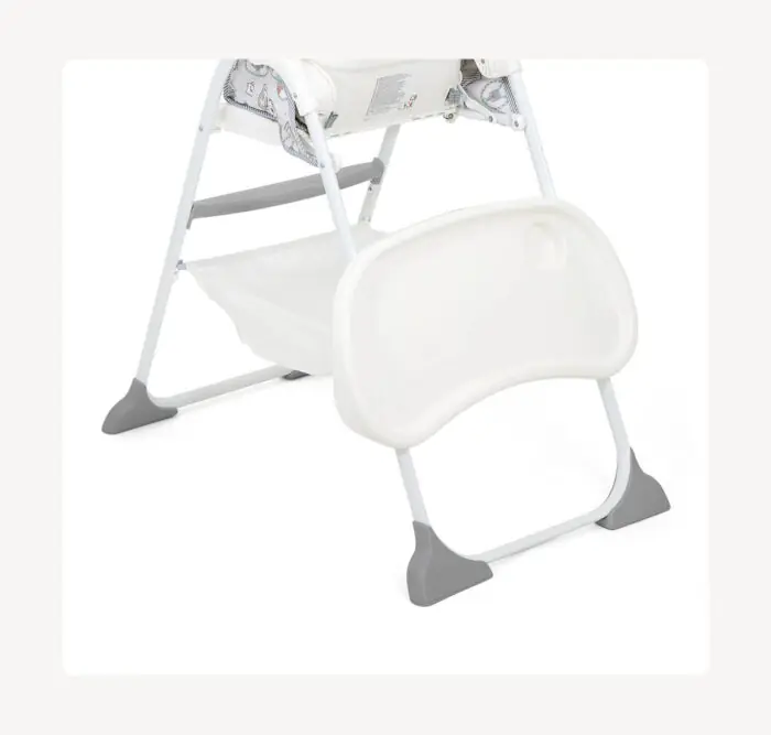 Noņemamā paplāte ar dziļuma regulēšanas iespējām nodrošina ērtu bērna piekļuvi ēdienam un to var uzglabāt mantu grozā, kad netiek izmantota. Trīs pozīcijās regulējamā atzveltne pielāgojas bērna vajadzībām – no aktīvas ēšanas līdz mierīgai atpūtai. Papildus komfortam krēsliņam ir regulējams kāju balsts un polsterētas 5 punktu drošības jostas, kas nodrošina drošību bez kompromisiem.