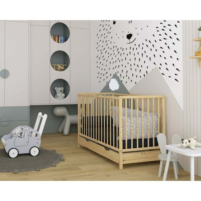 Šī ir funkcionāla un ērta mazuļu gultiņa, kas apvieno drošību un ērtības ikdienas lietošanai. Tā ir izgatavota no dabīga koka, nodrošinot gan ilgmūžību, gan mājīgu izskatu bērnistabā.