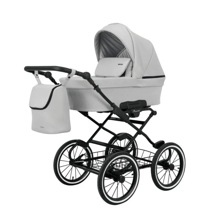 Romantic sērijas bērnu rati izceļas ar klasisku, bet vienlaikus elegantu dizainu, kas radīts, lai piesaistītu uzmanību. Pieejamās krāsu kombinācijas un izsmalcinātie apdares materiāli ir piemēroti tiem, kas novērtē gan vizuālo estētiku, gan praktiskumu. Šo ratu izturīgais tērauda rāmis ir ne tikai elegants, bet arī nodrošina stabilitāti un ilgu kalpošanas laiku. Ādas imitācijas detaļas piešķir šiem ratiem izsmalcinātību, turklāt tās ir viegli tīrāmas un izturīgas pret nolietošanos.