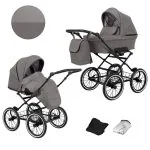 Romantic sērijas bērnu rati izceļas ar klasisku, bet vienlaikus elegantu dizainu, kas radīts, lai piesaistītu uzmanību. Pieejamās krāsu kombinācijas un izsmalcinātie apdares materiāli ir piemēroti tiem, kas novērtē gan vizuālo estētiku, gan praktiskumu. Šo ratu izturīgais tērauda rāmis ir ne tikai elegants, bet arī nodrošina stabilitāti un ilgu kalpošanas laiku. Ādas imitācijas detaļas piešķir šiem ratiem izsmalcinātību, turklāt tās ir viegli tīrāmas un izturīgas pret nolietošanos.
