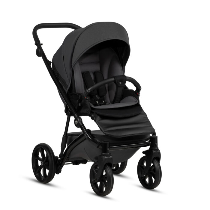 Ratiņu detaļas lieliski harmonizējas viena ar otru – noapaļotais un elegantais šasijas dizains un riteņi ar spīdīgu apdari piešķir ratiņiem iespaidīgu izskatu.