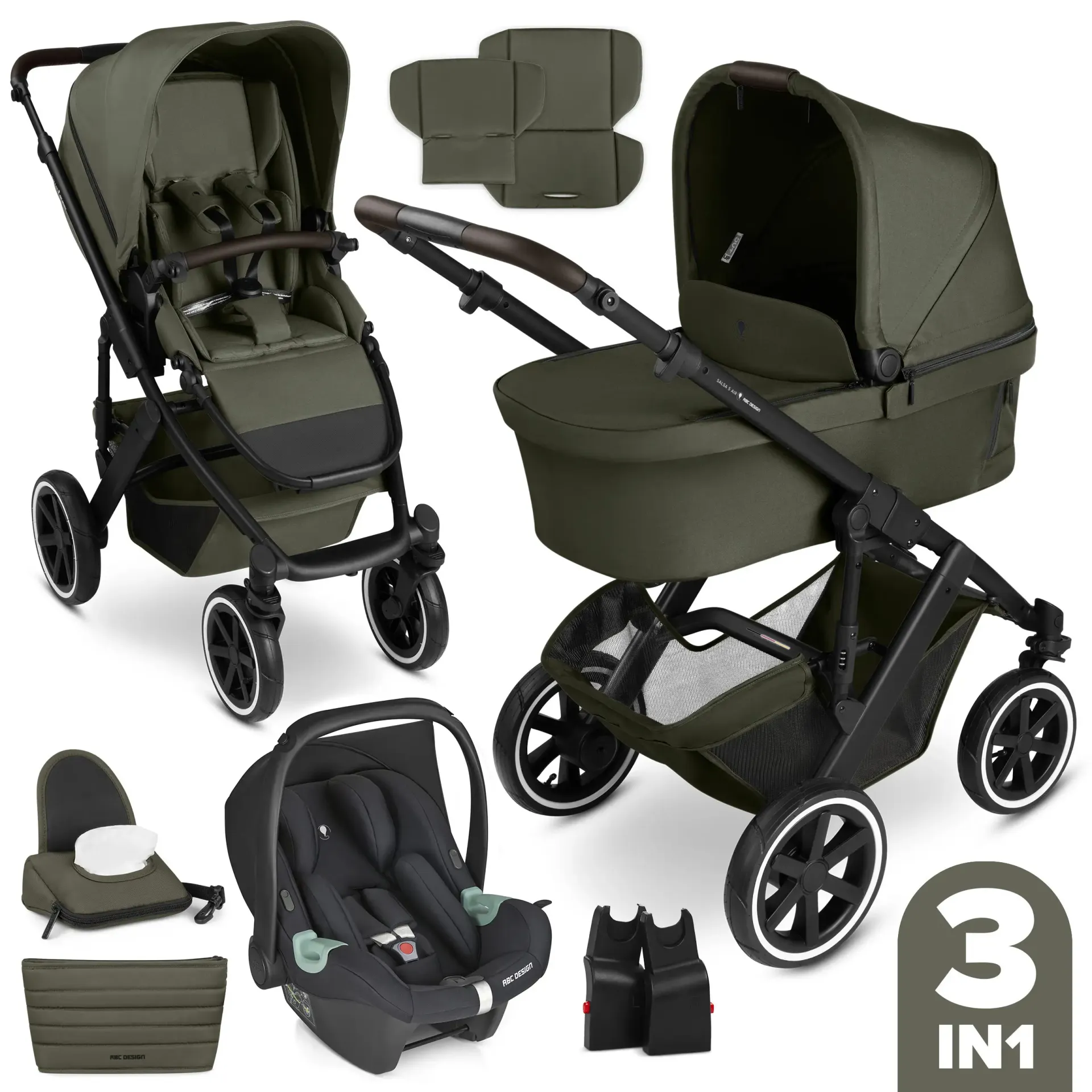 ABC Design Salsa 5 Air bērnu rati 3in1 – gaisa riteņi, salokāma kulba un komforts no dzimšanas līdz 4 gadiem.