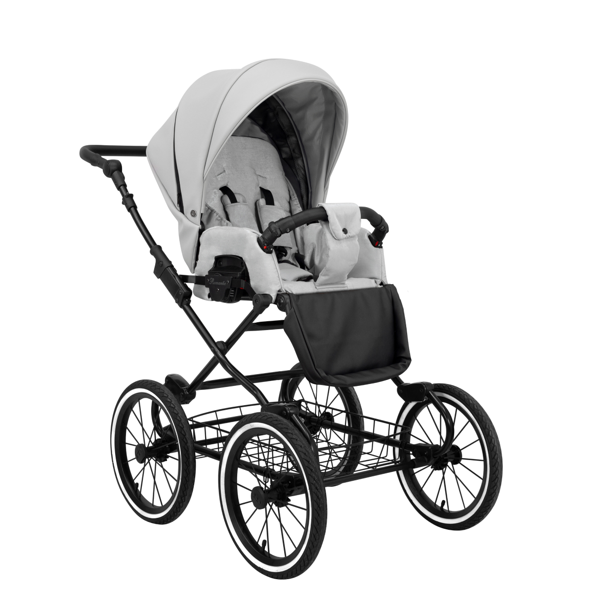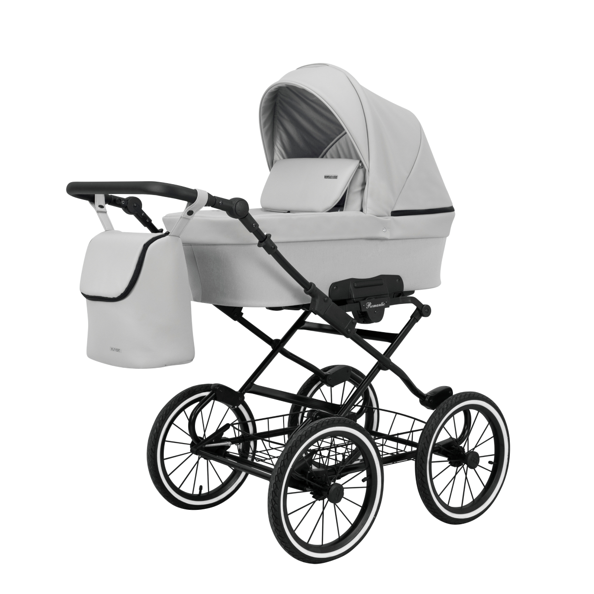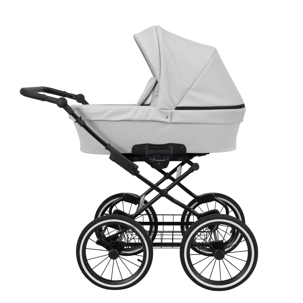 Romantic sērijas bērnu rati izceļas ar klasisku, bet vienlaikus elegantu dizainu, kas radīts, lai piesaistītu uzmanību. Pieejamās krāsu kombinācijas un izsmalcinātie apdares materiāli ir piemēroti tiem, kas novērtē gan vizuālo estētiku, gan praktiskumu. Šo ratu izturīgais tērauda rāmis ir ne tikai elegants, bet arī nodrošina stabilitāti un ilgu kalpošanas laiku. Ādas imitācijas detaļas piešķir šiem ratiem izsmalcinātību, turklāt tās ir viegli tīrāmas un izturīgas pret nolietošanos.