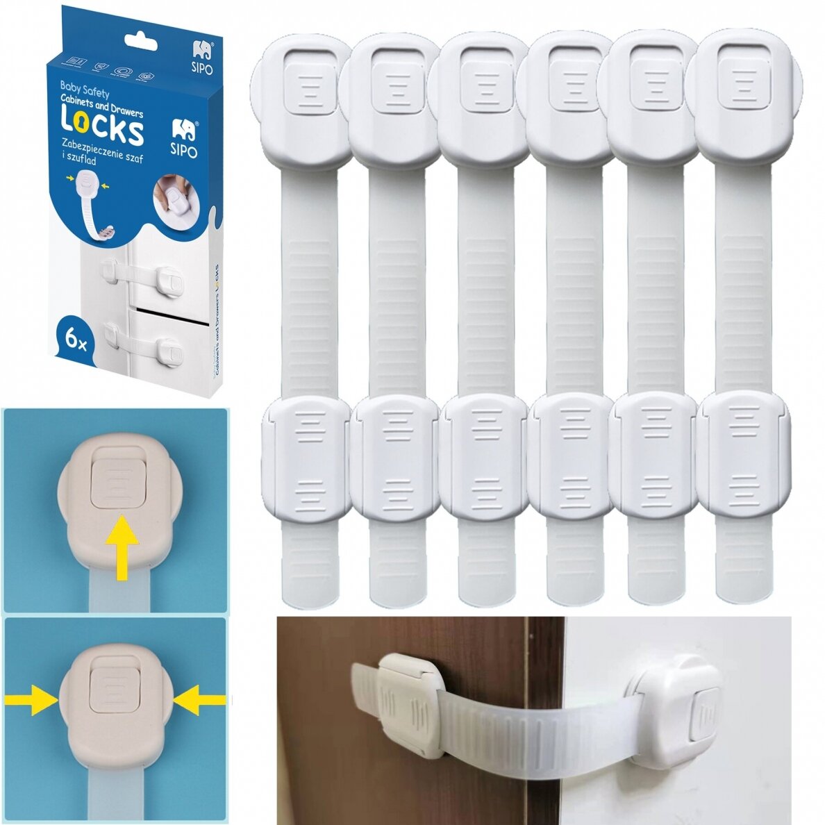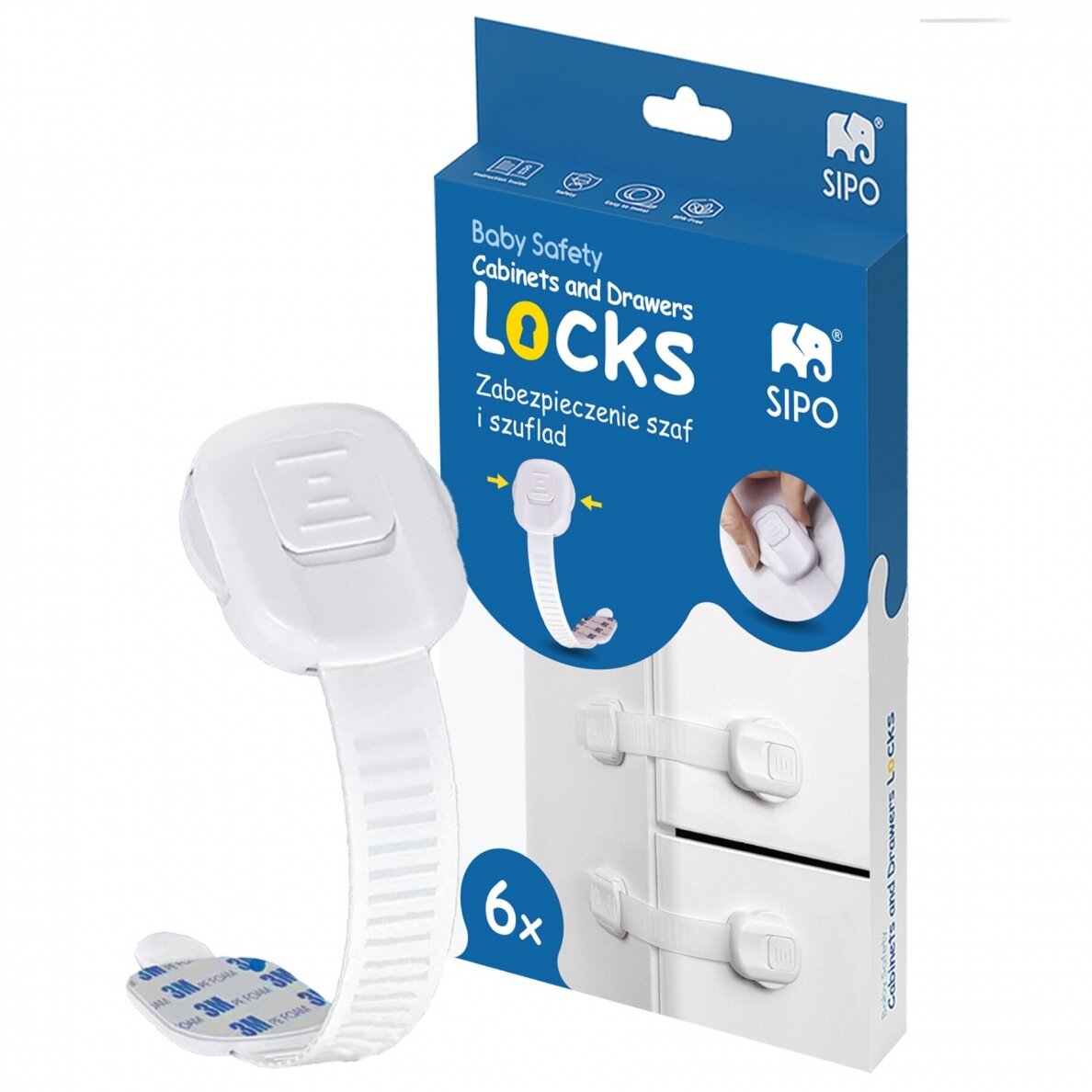 SIPO drošības slēdzenes skapjiem un atvilktnēm ar regulējamu garumu efektīvi novērš skapīšu un atvilktņu atvēršanu, aizsargājot bērnus no traumām un bīstamiem priekšmetiem. Viegli uzstādāmi, universāli lietojami un droši bērniem.