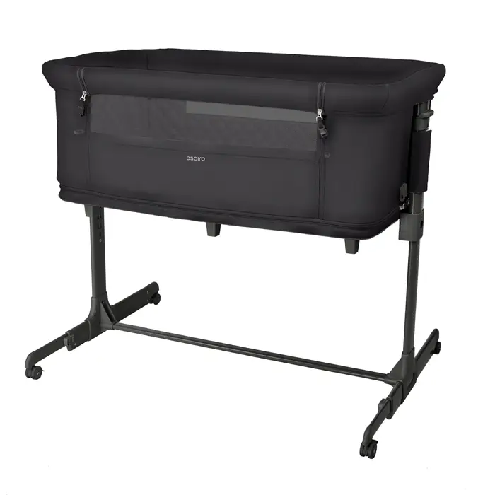 Zīdaiņu gultiņa Espiro Cloud 10 Black shadow – elpojoši sānu tīkliņi, stabils rāmis, ātra salikšana, somiņa transportēšanai. Praktiska ikdienai un ceļojumos.