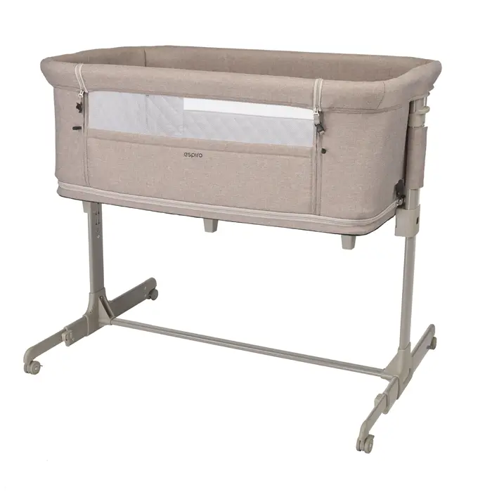Zīdaiņu gultiņa Espiro Cloud 19 Beige dune – elpojoši sānu tīkliņi, stabils rāmis, ātra salikšana, somiņa transportēšanai. Praktiska ikdienai un ceļojumos.