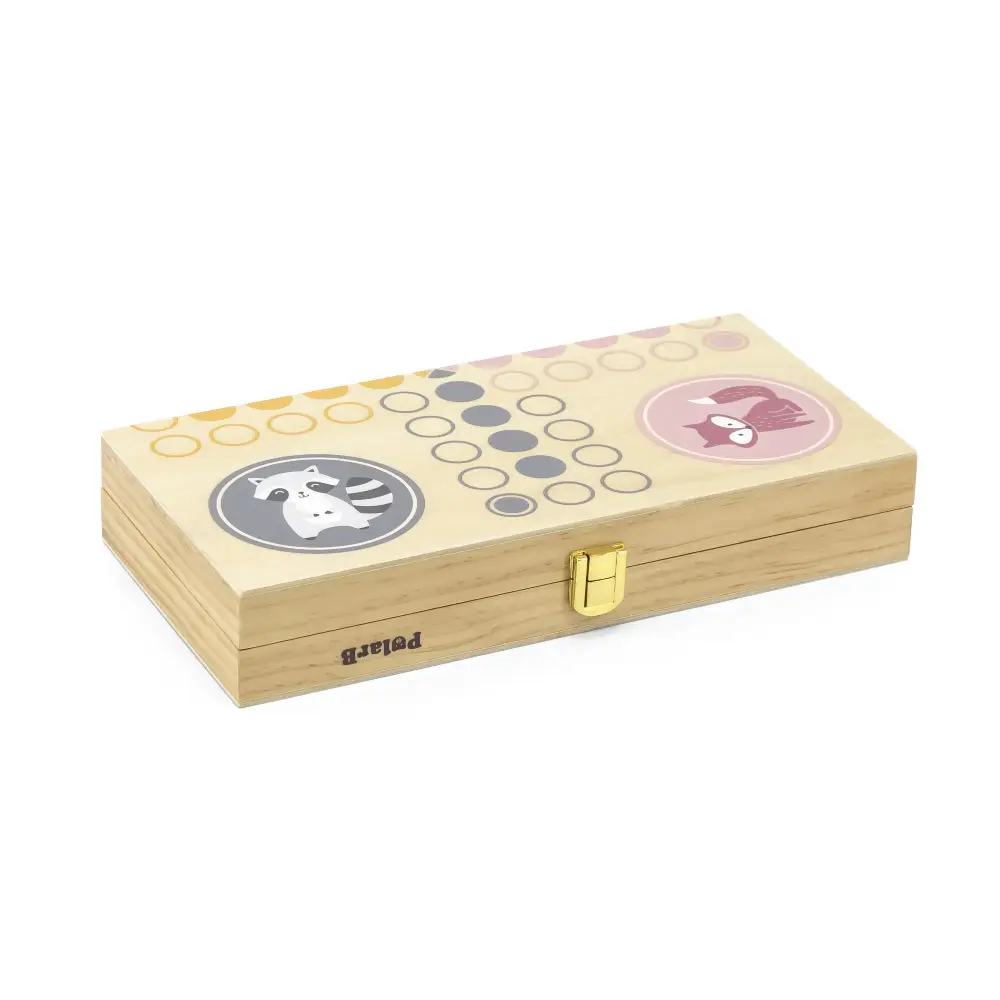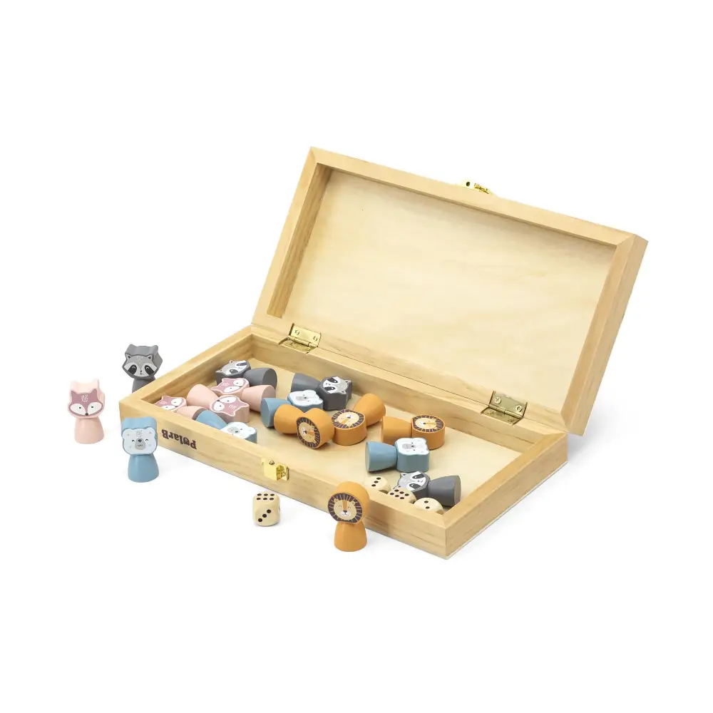 Atveriet koka kastīti un apgrieziet to otrādi – tā pārvēršas par skaistu spēles virsmu. Katram spēlētājam ir jāizvēlas viens no četriem dzīvnieku komplektiem un jācenšas pirmajam nogādāt savas figūriņas līdz finišam. Spēle attīsta stratēģisko domāšanu, pacietību un veiksmes sajūtu.