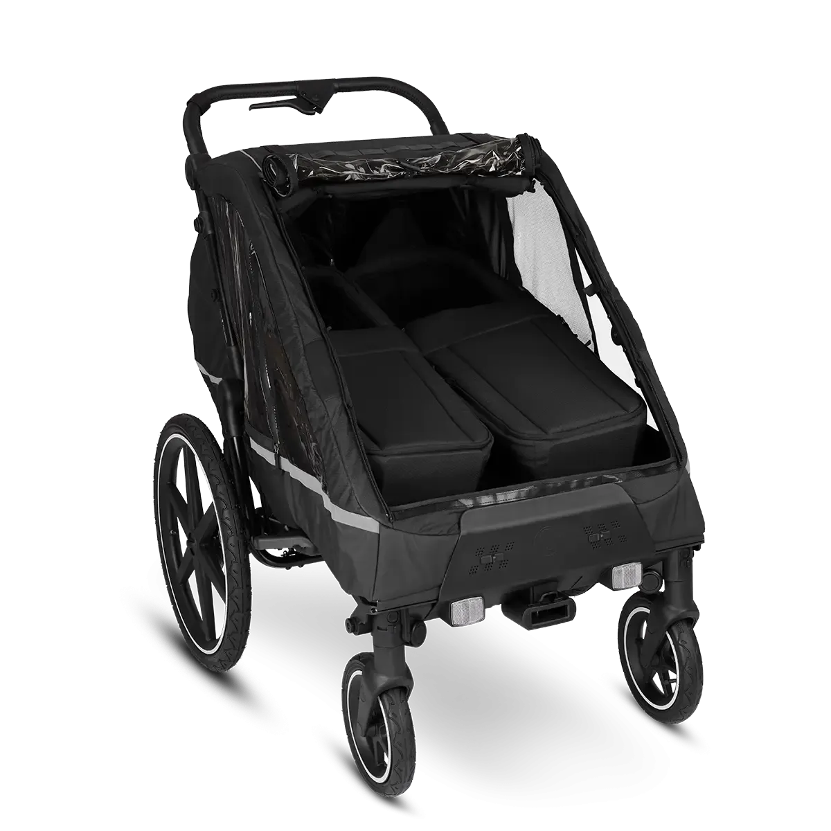 Ja esat dvīņu vecāki – nekas nav par šķērsli! Iespēja izmantot divus ieliktņus vienlaikus padara šo modeli par ideālu izvēli dvīņiem, pārvēršot velopiekabi par ērtiem dvīņu ratiņiem.