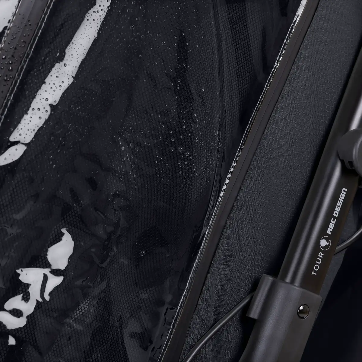 Pateicoties viegli uzstādāmai stiprinājumu sistēmai, ieliktnis tiek droši piestiprināts ABC Design Tour piekabes sēdekļa daļā un ir viegli izņemams, kad nepieciešams. Tādējādi tas pārvērš velopiekabi par pirmo izturīgo bērnu ratiņu risinājumu, piemērotu arī nelīdzenai videi un meža takām.