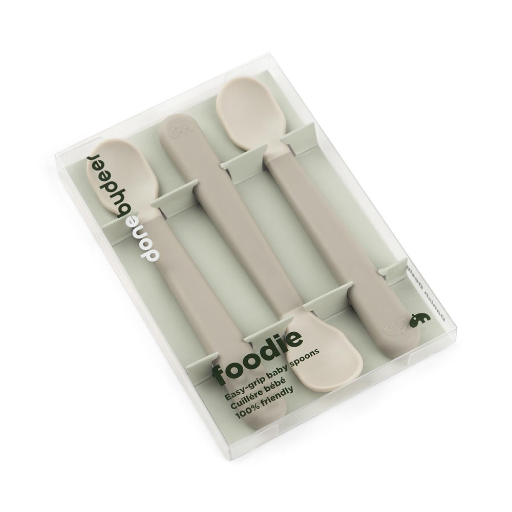 Karotes bērniem Done by Deer Foodie Sand – dabīga dizaina karotes pirmajām ēdienreizēm