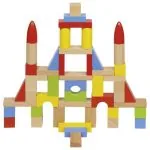 Dažādu formu krāsaini koka klucīši, kas gludi apstrādāti, lai rotaļas ar tiem būtu drošas.