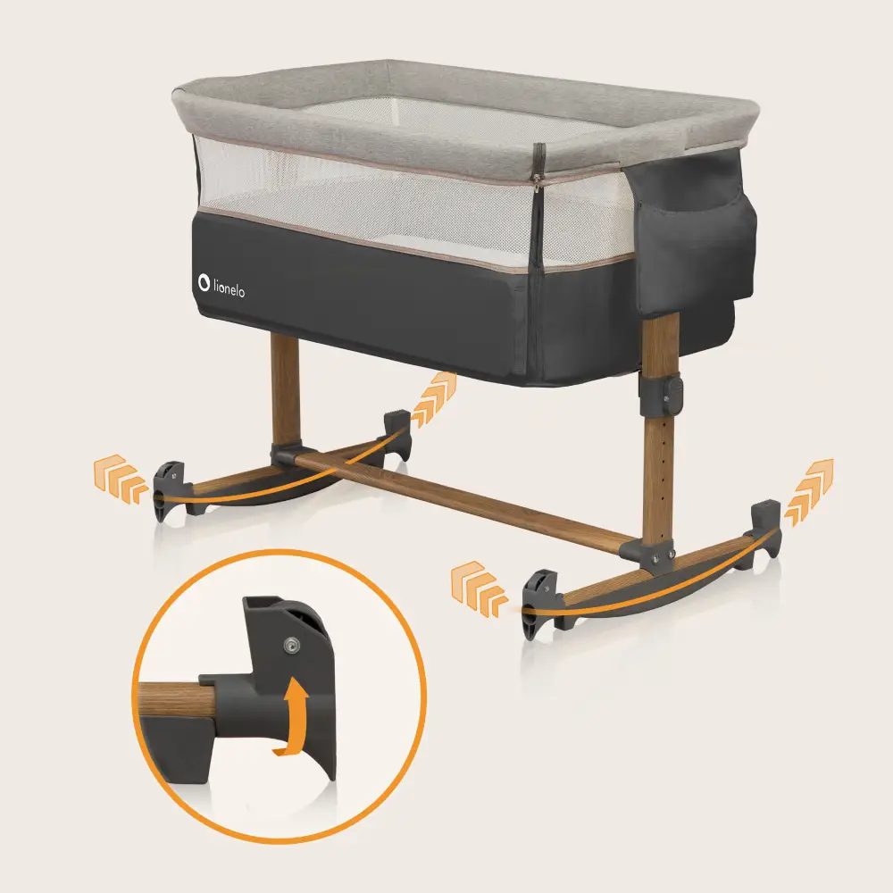 Zīdaiņu gultiņa Lionelo Leonie Grey stone ir mājīga gultiņa ar matraci un šūpošanas funkciju. Universāla izvēle drošam miegam un siltai atmosfērai bērnistabā.