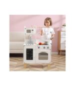 Bērnu rotaļu virtuve ar aksesuāriem ir radīta, lai attīstītu bērnu radošumu, iztēli un sociālās prasmes caur jautrām un izglītojošām rotaļām. Šī izturīgā koka virtuvīte piedāvā autentisku spēles pieredzi ar funkcionālu plīti, kas iedegas un rada burbuļojošas skaņas, mikroviļņu krāsni, izlietni un cepeškrāsni. Tā ir izstrādāta bērniem no 3 gadu vecuma, piedāvājot drošu un stimulējošu vidi lomu spēlēm.