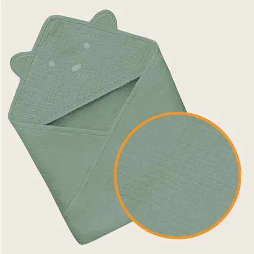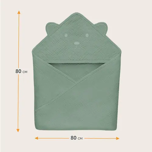 Dvielis ir mīksts un viegls, pateicoties tam tas neizraisa kairinājumu un var tikt izmantots no dzimšanas. Muslīna audums labi uzsūc mitrumu, vienlaikus nodrošinot termālo komfortu, tāpēc bērns jūtas patīkami arī pēc karstas vannas.