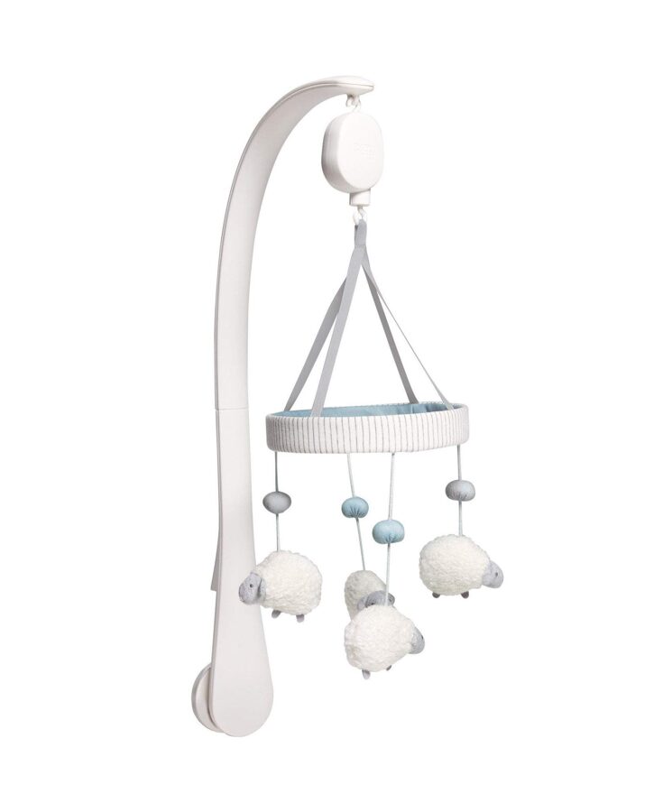 Pūkainas aitiņas un jauku svītrainu zilu apdruku. Pateicoties maigajai mūzikai, jūsu bērns īsā laikā varēs ātri iemigt