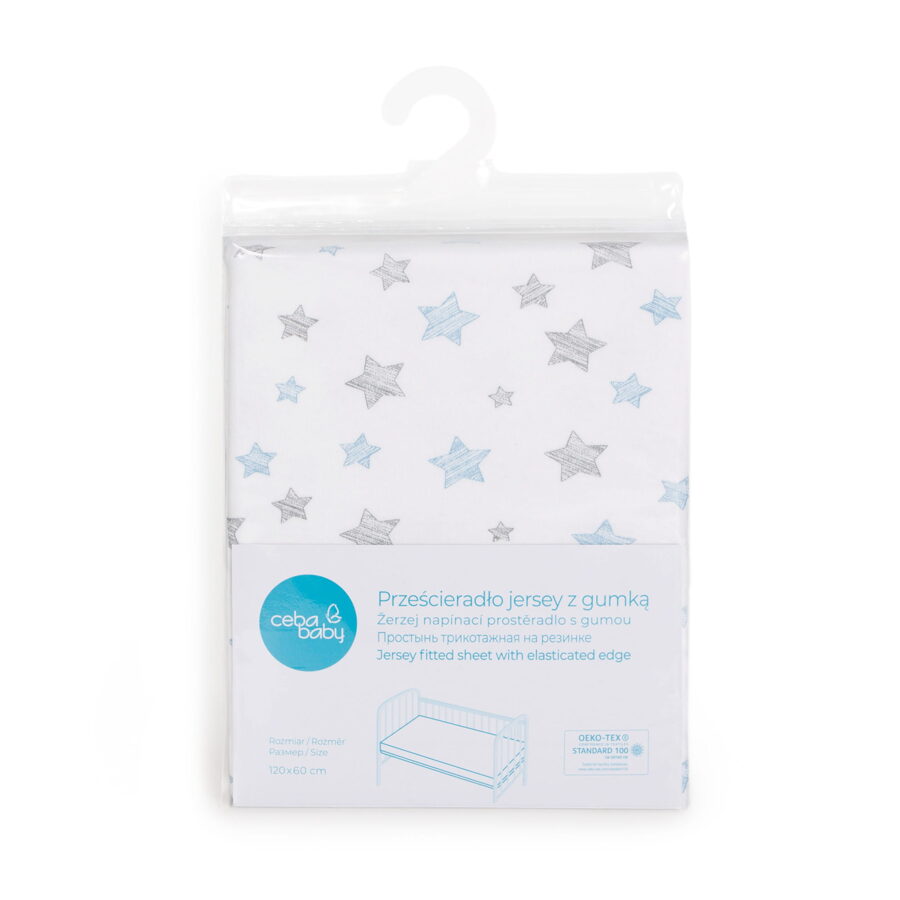 Palags ar gumiju BLUE STARS, jersey, 120 x 60 cm, Ceba baby.