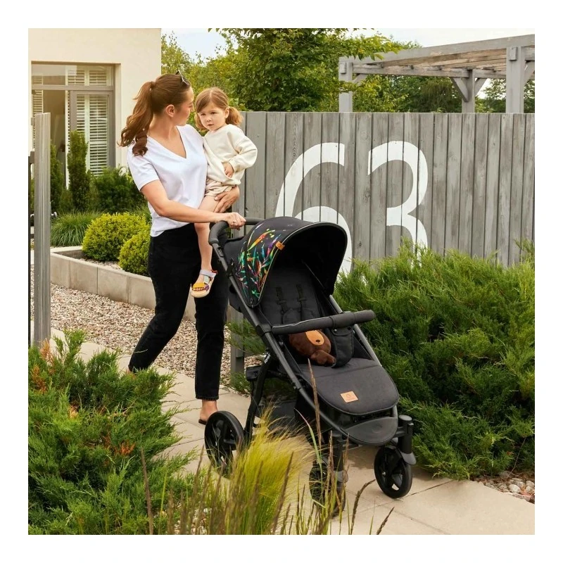 Plaša un regulējama sēdvieta – Ratiņu ergonomiskais dizains ļauj viegli pielāgot sēdvietu mazuļa vajadzībām – no sēdus līdz pilnīgi guļus pozīcijai, nodrošinot pilnvērtīgu atpūtu pastaigu laikā. Ratiņu muguriņa ir regulējama daudzos līmeņos, ļaujot pielāgot to bērna vajadzībām dažādos vecuma posmos.