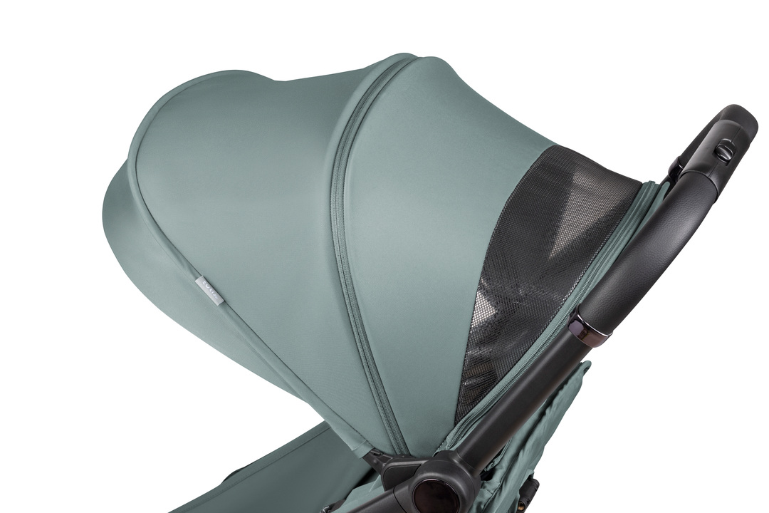 Kapuce ir aprīkota ar “peek-a-boo” logu un panorāmas ventilācijas atverēm, kas nodrošina lielisku gaisa cirkulāciju karstās dienās un vienlaikus pasargā mazuli no saules vai vēja.
