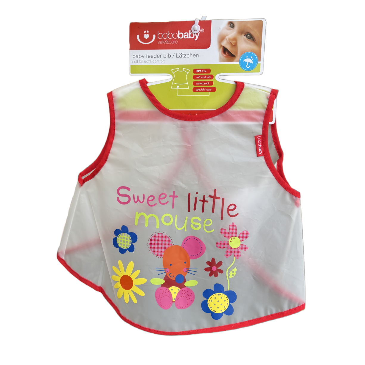 Bobobaby S-F5 priekšautiņš ir praktisks risinājums vecākiem, kuri vēlas pasargāt bērna apģērbu no netīrumiem un šķidrumiem maltīšu laikā. Tas ir izgatavots no 100% ūdensizturīga PEVA materiāla, kas efektīvi neļauj mitrumam iesūkties apģērbā.