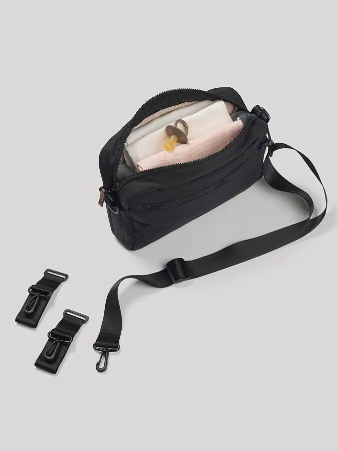 Organizatoram ir vairākas iekšējās un ārējās kabatas, kur salikt visu pastaigai nepieciešamo – no mazuļa kopšanas līdzekļiem un rotaļlietām līdz mammas mantām.