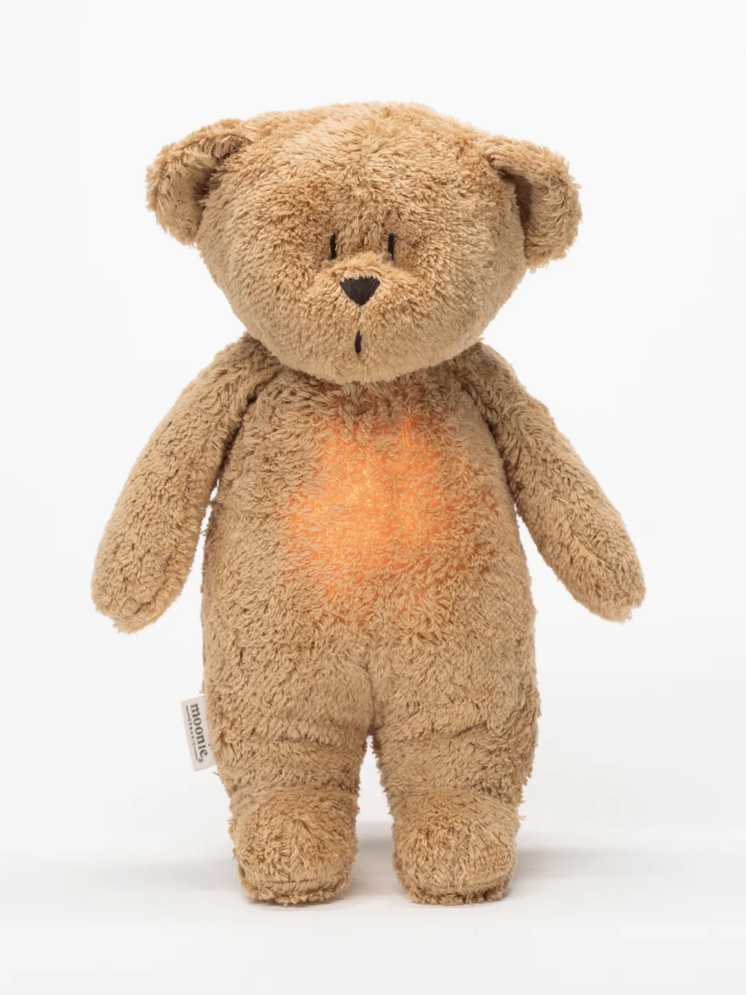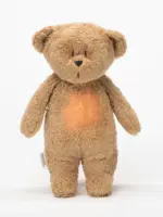 Moonie 2.0 Organic Humming Bear – Cappucchino ir maigs, nomierinošs miega lācītis no organiskās kokvilnas ar rozā troksni, Smart Cry sensoru un LED naktslampu. Lieliski piemērots mierīgam jaundzimušā miegam.