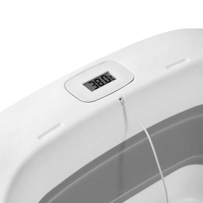 Bērna peldes drošība un komforts ir prioritāte, un iebūvētais termometrs to padara vienkāršu un precīzu. Tas nepārtraukti uzrauga ūdens temperatūru, sniedzot vecākiem pārliecību, ka ūdens nav ne par aukstu, ne par karstu. Nav nepieciešami atsevišķi peldes termometri – visu var pārbaudīt uzreiz vannā, kas ir īpaši ērti, ja mazulis jau ir ūdenī.