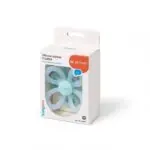 Silikona graužamā rotaļlieta ir piemērota bērniem no 0 mēnešu vecuma, sver tikai 38 g un ir kompakts – izmērs 9 × 9 cm, padarot to viegli pārnēsājamu un piemērotu lietošanai gan mājās, gan ceļā.