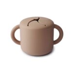 Silikona uzkodu krūze ir izstrādāta ar diviem maziem rokturiem, kas nodrošina vieglu satvērienu mazajām rociņām, un tā ir izturīga pret izšļakstīšanos, to ikviens mazulis var paņemt līdzi ceļā. Mīkstā atvēršana nodrošina, ka mazuļa rokas var viegli izbīdīt iekšā un ārā, vienlaikus droši turot pārtiku iekšā. Šī uzkodu krūze ir obligāta kustībā esošiem mazuļiem.