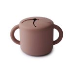 Silikona uzkodu krūze ir izstrādāta ar diviem maziem rokturiem, kas nodrošina vieglu satvērienu mazajām rociņām, un tā ir izturīga pret izšļakstīšanos, to ikviens mazulis var paņemt līdzi ceļā. Mīkstā atvēršana nodrošina, ka mazuļa rokas var viegli izbīdīt iekšā un ārā, vienlaikus droši turot pārtiku iekšā. Šī uzkodu krūze ir obligāta kustībā esošiem mazuļiem.