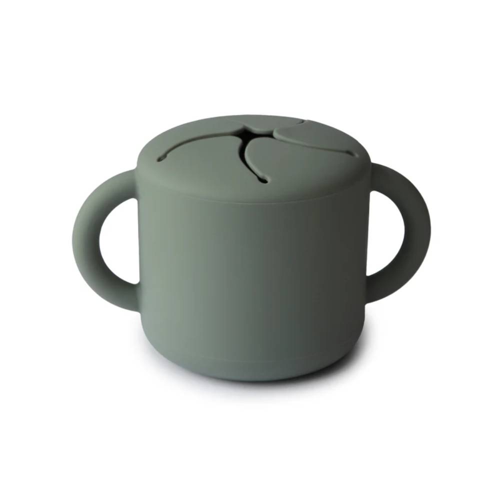 Silikona uzkodu krūze ir izstrādāta ar diviem maziem rokturiem, kas nodrošina vieglu satvērienu mazajām rociņām, un tā ir izturīga pret izšļakstīšanos, to ikviens mazulis var paņemt līdzi ceļā. Mīkstā atvēršana nodrošina, ka mazuļa rokas var viegli izbīdīt iekšā un ārā, vienlaikus droši turot pārtiku iekšā. Šī uzkodu krūze ir obligāta kustībā esošiem mazuļiem.