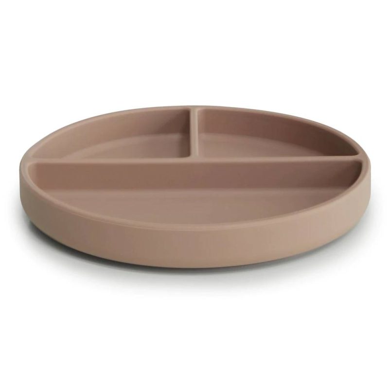 Silikona šķīvis ar nodalījumiem un piesūcekni.