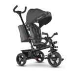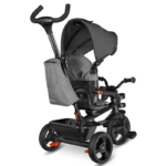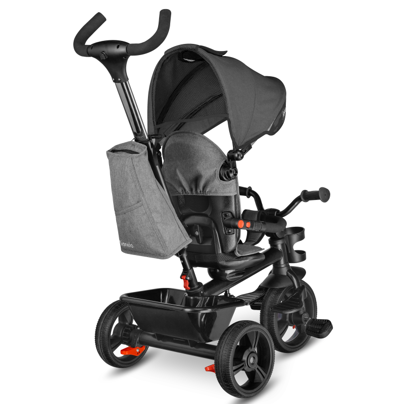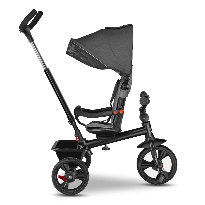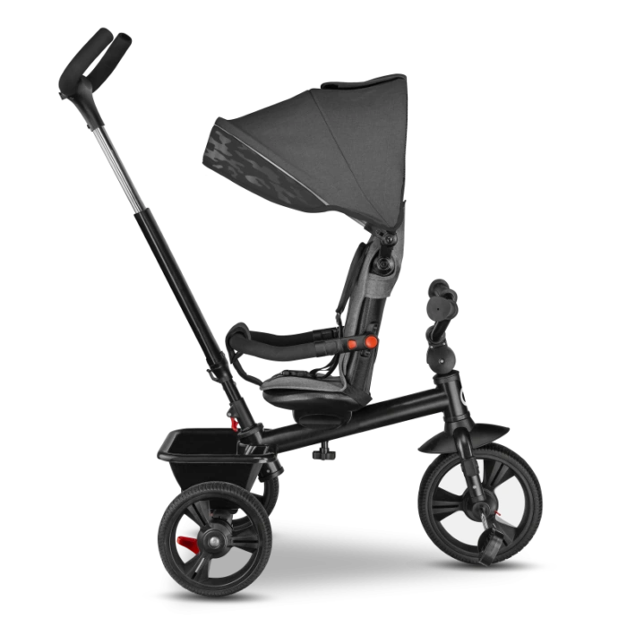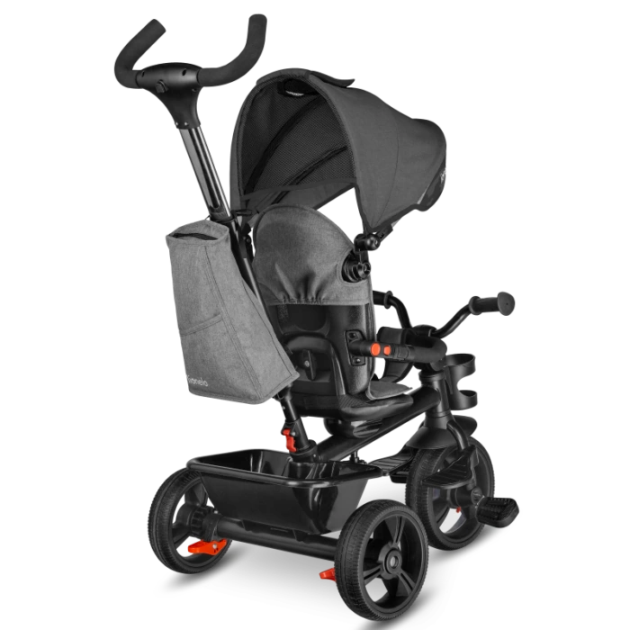 Nojume, aizsargbarjera, groziņš vai stumjamais rokturis – visus šos elementus iespējams pielāgot, uzstādīt vai noņemt, atkarībā no situācijas. Modulārais dizains ļauj pielāgot trīsriteni bērna vecumam, fiziskajai attīstībai un pat dienas plānam, padarot to par daudzfunkcionālu risinājumu ilgtermiņā.