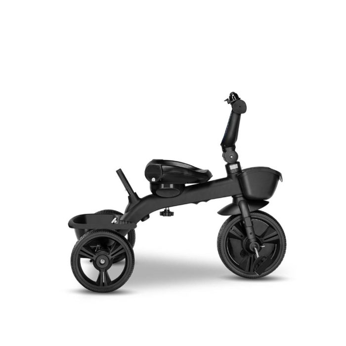 Regulējams rokturis pielāgojas vecāka augumam, nodrošinot ērtu vadību. Bērnam komfortu nodrošina mīksts, 3 līmeņos regulējams sēdeklis un noņemams saulessargs ar integrētu sietu. Kad bērns paaugas, rokturi, kāju balstu un drošības loku var noņemt, pārveidojot Kori par klasisku trīsriteni.