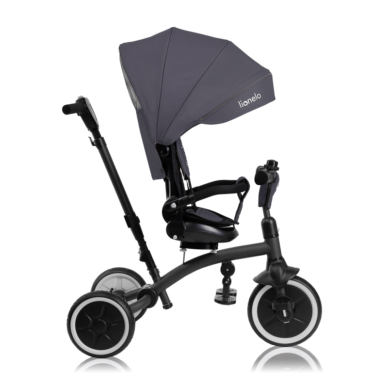 Lionelo Tris Plus – daudzfunkcionāls bērnu trīsritenis ar maksimālu komfortu un drošību.