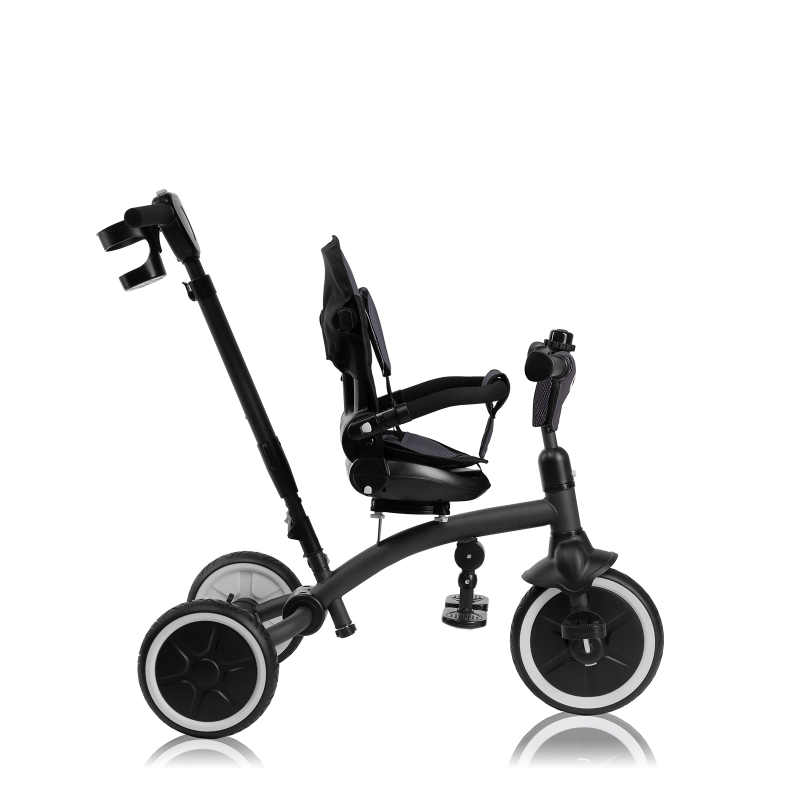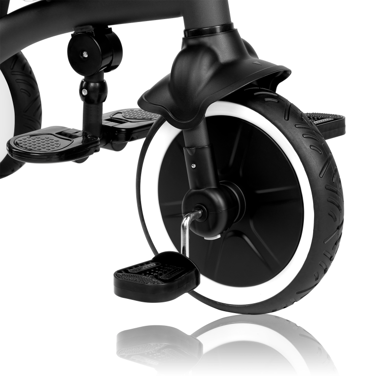 Modulāra konstrukcija un regulējami elementi nodrošina, ka produkts pielāgojas bērna augumam un attīstībai. Divas ērtas kāju balsta pozīcijas ļauj gan mazākiem bērniem atpūsties, gan lielākiem aktīvi griezt pedāļus.