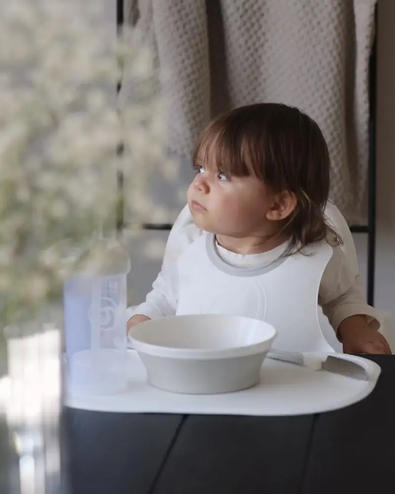 Lielā, dziļā kabata efektīvi notver izbirušos ēdienus, samazinot netīrību uz apģērba un grīdas. Regulējamā aizdare kakla daļā ļauj priekšautiņam pielāgoties augošam bērnam, nodrošinot komfortu jau no 4 mēnešu vecuma. Tā īpašā forma nodrošina, ka priekšautiņš neiesprūst zem galda malas, kas padara to ideāli piemērotu augstiem barošanas krēsliem.
