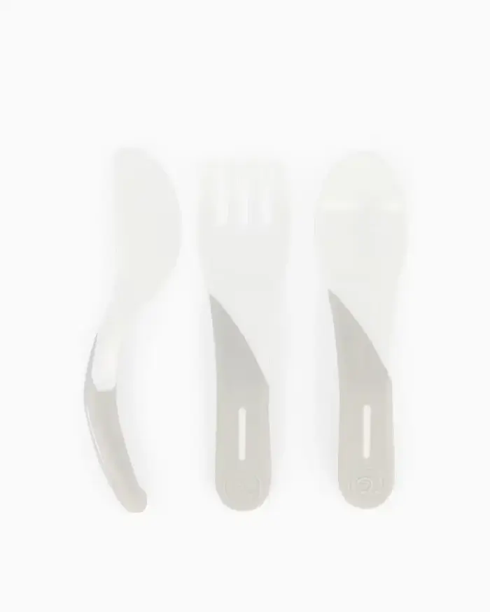 Twistshake galda piederumu komplekts mazajiem ir īpaši izstrādāts, lai veicinātu bērna vēlmi ēst patstāvīgi un attīstītu motoriskās prasmes. Komplektā iekļauts nazītis, dakšiņa un karotīte, kas piemēroti bērniem no 6 mēnešu vecuma. Īsie un ergonomiski rokturi ir pārklāti ar neslīdošu TPE gumijas slāni, lai palīdzētu bērnam vieglāk noturēt piederumus un precīzāk virzīt ēdienu mutē.