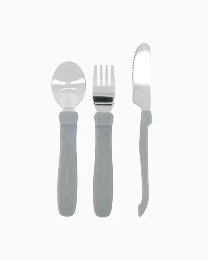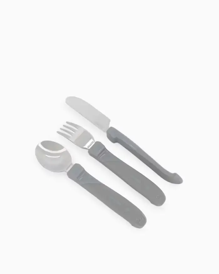 Twistshake metāla galda piederumi ir īpaši izstrādāti, lai palīdzētu bērniem apgūt patstāvīgu ēšanu. Komplektā ietilpst dakša, nazis un karote ar ērtiem neslīdošiem rokturiem un drošu, bērniem piemērotu dizainu.