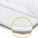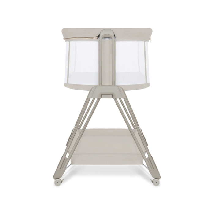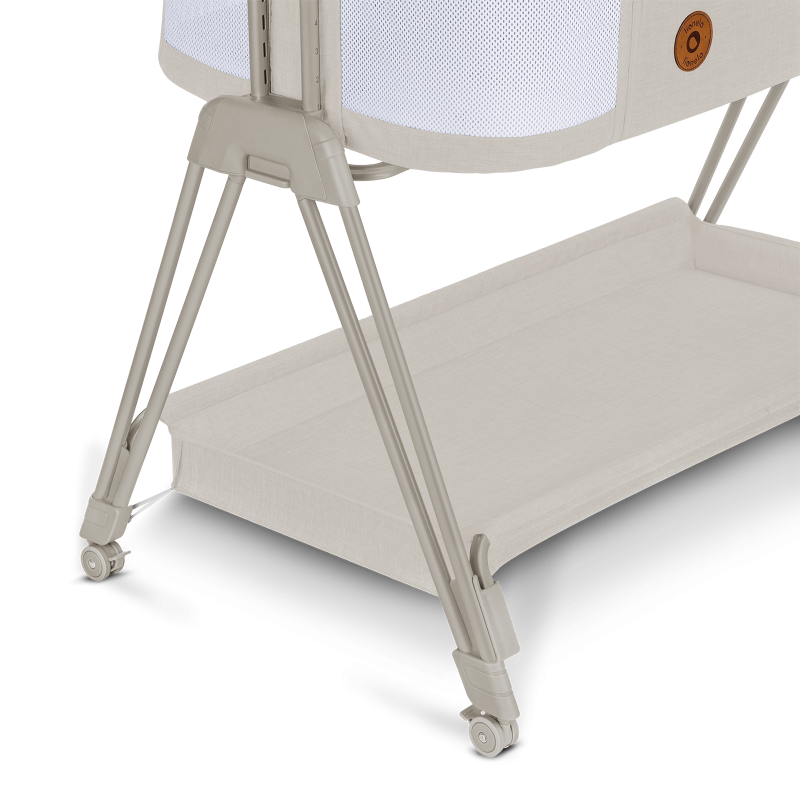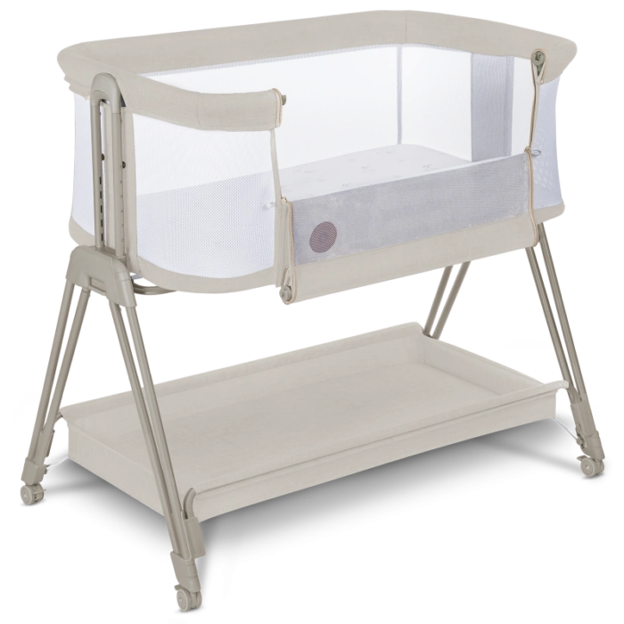 Gultiņas sānu daļas izgatavotas no elpojoša sietiņa, kas nodrošina gaisa cirkulāciju un ļauj vecākiem viegli pārraudzīt mazuli. Tērauda rāmis ar neslīdošiem kāju pārsegiem nodrošina drošu stabilitāti.